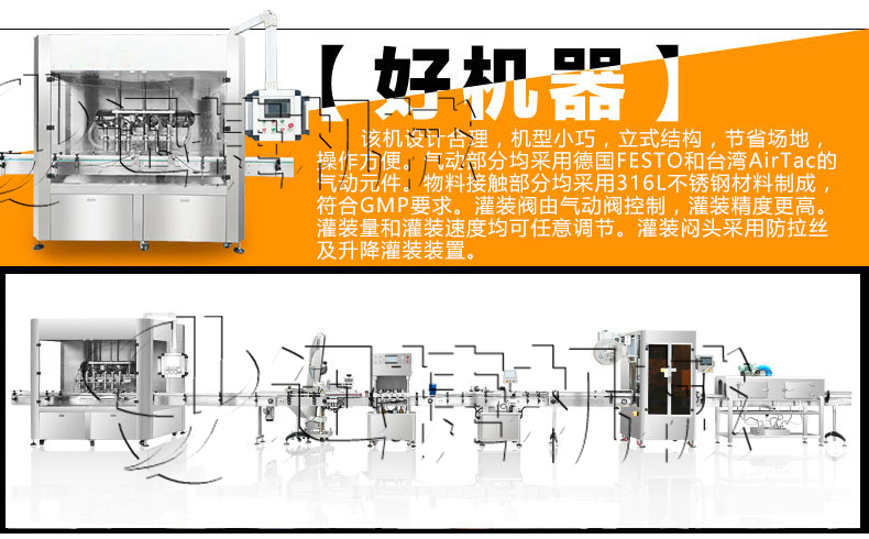 5、灌裝時(shí)瓶子不到位、瓶子堵塞活出液管沒有插進(jìn)瓶子時(shí)設(shè)備將自動(dòng)保護(hù),排除后繼續(xù)作業(yè)。