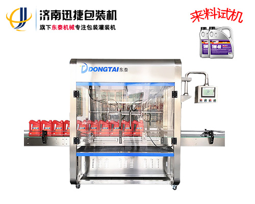 5.灌裝頭為國家專利產品,專利獲得者為東泰公司,獨有的雙重防滴漏,灌裝下料口設計精細,行程短,同時也提高了整條線的灌裝速度和灌裝精度,保證在正常灌裝過程中一滴油都不會滲漏