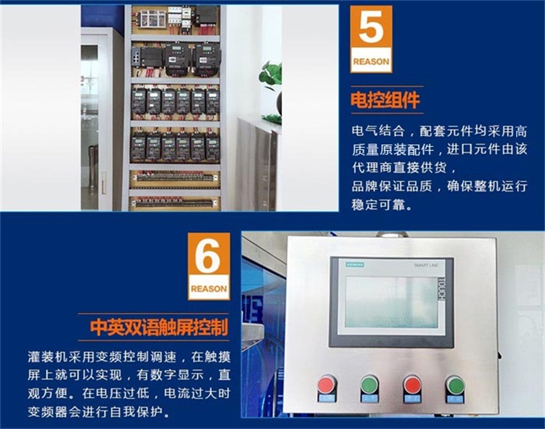 7.其他廠家采用調速電機,靠手動旋轉電機上的轉輪來改變輸送帶的速度,調整只能憑感覺極為不方便。我們的灌裝機采用變頻控制調速,在觸摸屏上就可以實現,有數字顯示,直觀方便。在電壓過低,電流過大時變頻器會進行自我保護。